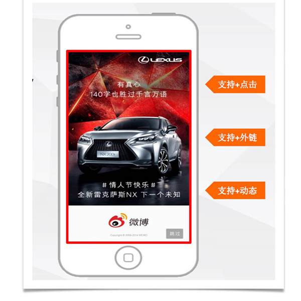 4、微博開屏廣告可以通過點擊屏幕,直接進入互動頁面,或者是進入你需要的網站頁,一步到位,保證客戶的轉化率達到最高。