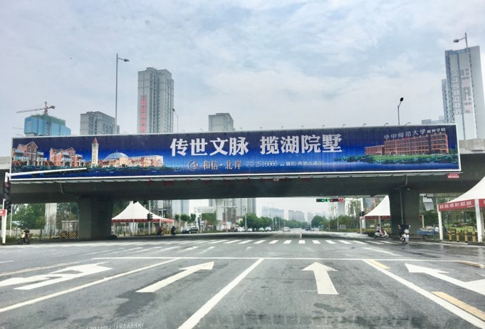 襄陽鉆石大道東風本田4S店門口鐵路橋橫跨三面翻廣告