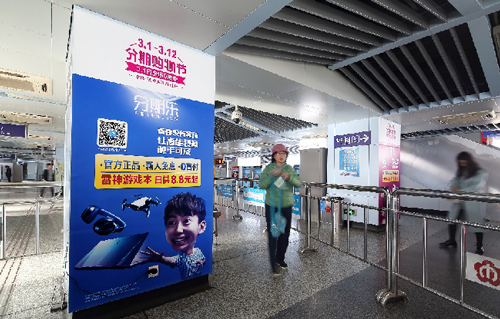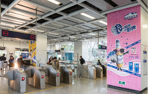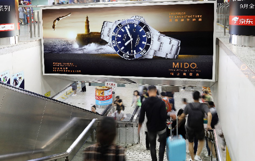 | 創意媒體-南京地鐵新街口站8號品牌通道廣告 線路:1、2號線 組合形式:73.34㎡ 墻貼 媒體費(元/52周):600,000 制作方式:UV寫真燈布 制作費(元/次):22,002 |