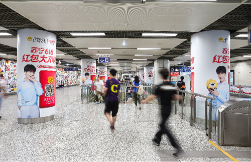 超級媒體-南京地鐵包柱(站廳)廣告