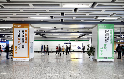 | 創意媒體-南京地鐵仙林中心站社區站廣告 線路:2號線 組合形式 :墻貼2面+柱貼19面 媒體費(元/4周):200,000 制作方式:寫真噴繪 制作費(元/次):35,631 |