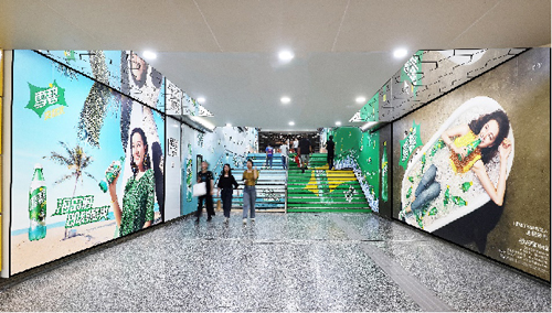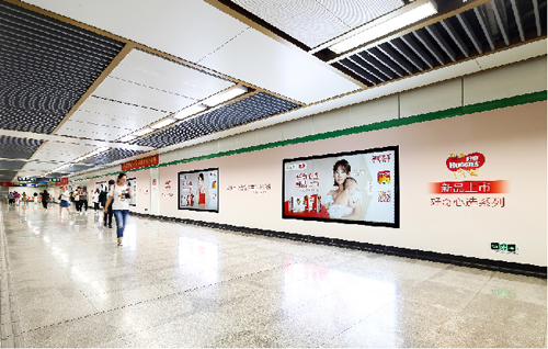 | 創意媒體-南京地鐵集慶門大街站1號品牌通道廣告 線路:2號線 組合形式:1號通道:約196.08㎡墻貼 媒體費(元/52周):400,000 制作方式:寫真噴繪 制作費(元/次):58,824 |