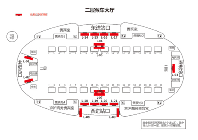 高鐵線路:京滬線????? 高鐵站名:北京南站??? ? 級別:特級站?? ?? 預估日均人流量:350,000?? ?? LCD屏面數(shù):44????? 規(guī)格:65吋