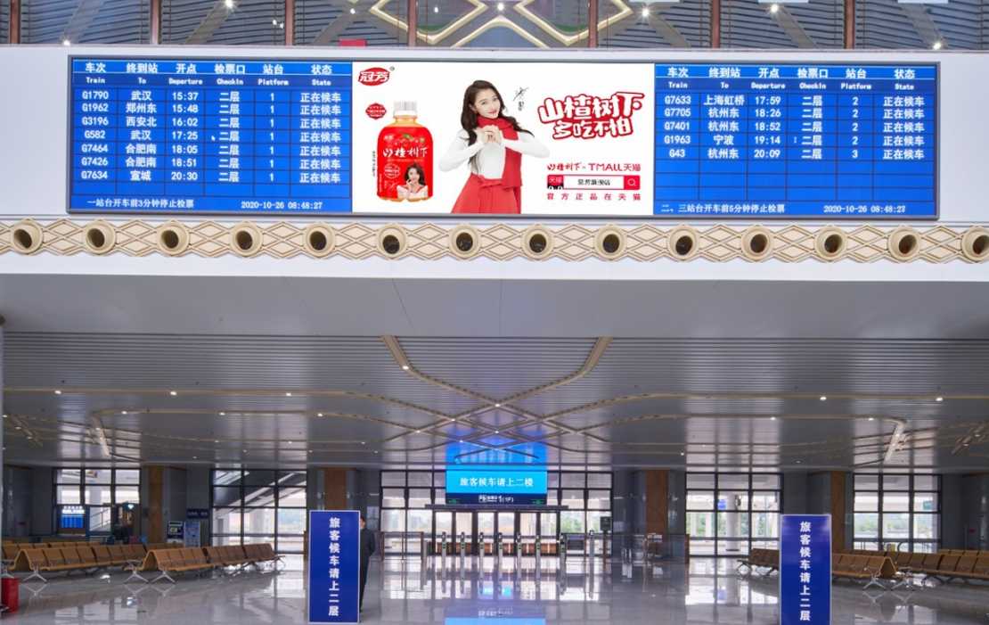 安吉高鐵站led屏廣告,安吉站高鐵大屏廣告,安吉高鐵站led廣告