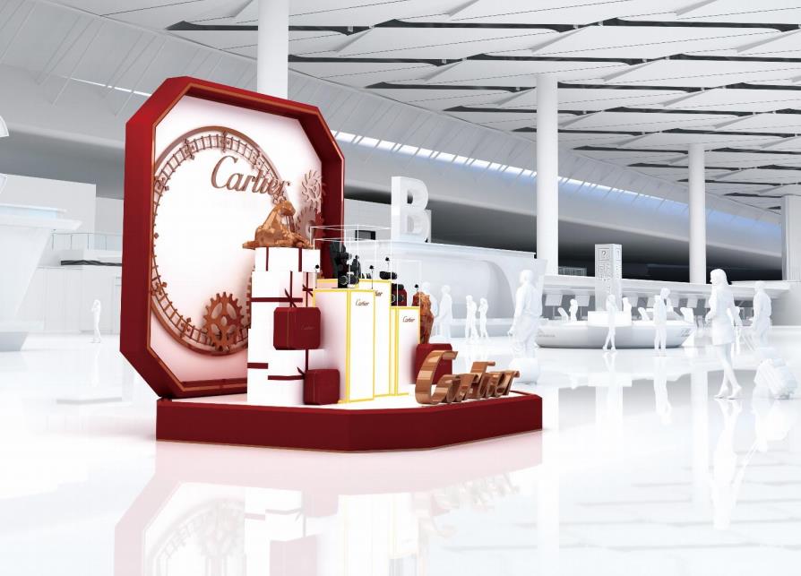 成都天府機場廣告-T1國際出發辦票廳創意展位廣告