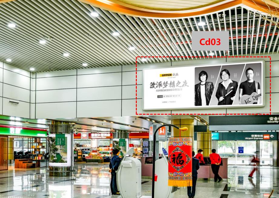 CD06:媒體位置醒目,正對前往值機柜臺的旅客動線,觀看效果佳,該高度基本無遮擋,可視距離長;