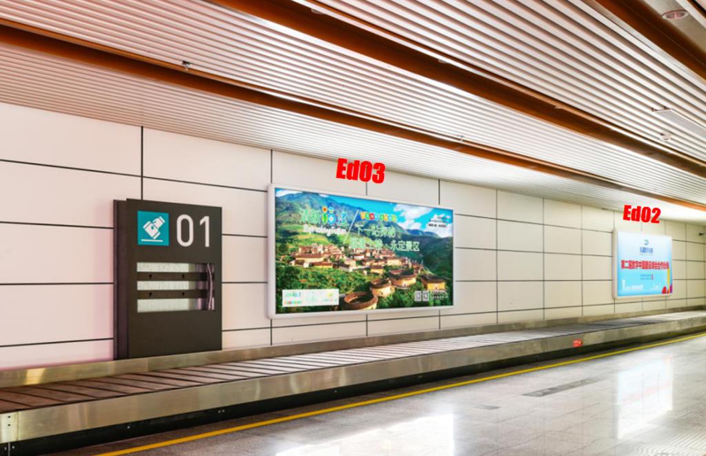該區(qū)域較封閉,且等候行李時間較長,媒體重復(fù)收視率高,廣告價值高,同排兩個媒體組合投放能形成品牌通道的震撼效果。