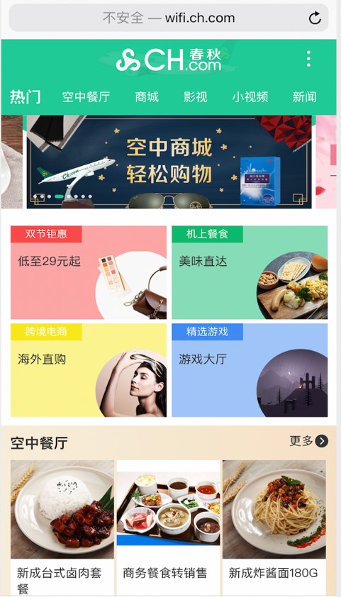 機上WIFI—空中餐廳、商城、影視、新聞等子板塊焦點圖