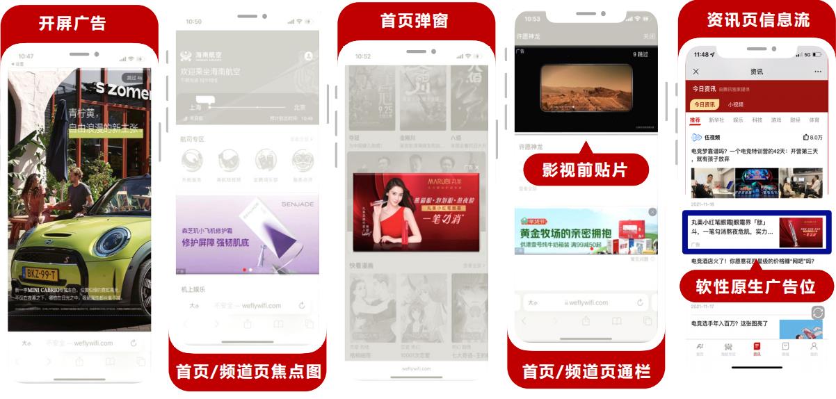 機上WiFi,傳統+電子媒體,數字內容,客艙服務,航程電商,目的地信息等航空出行全場景營銷