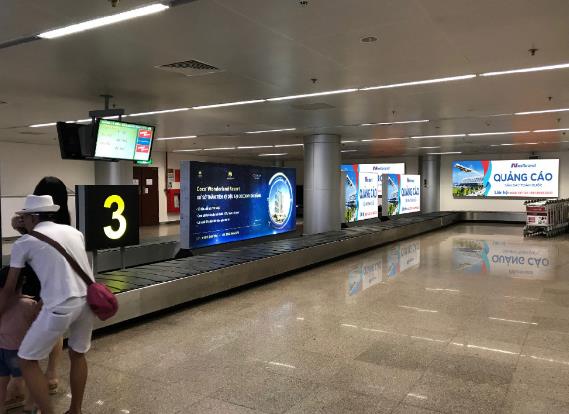位置:越南峴港國際機場海關檢查口1樓LED廣告屏正面出入境區