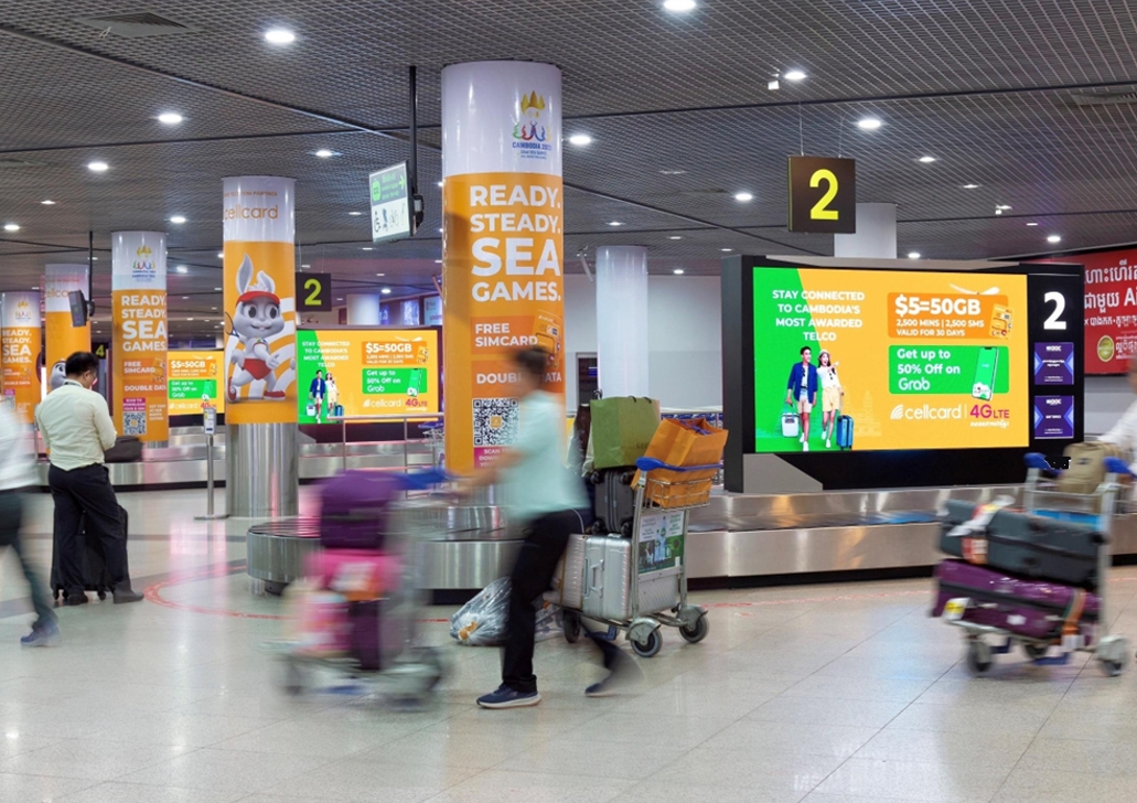 這個巨大的熒幕旨在成為乘客離開機場前看到的最后一條訊息,它將吸引每位到達金邊國際機場的乘客的注意力,使其成為房地產、電信、汽車、保險和許多其他品牌的絕佳機會。