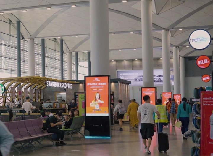 100% 從金邊國際機場出發的乘客都可以看到的lcd廣告,它可以以多種語言運行訊息傳遞,并有機會全天更改內容以針對不同的受眾。