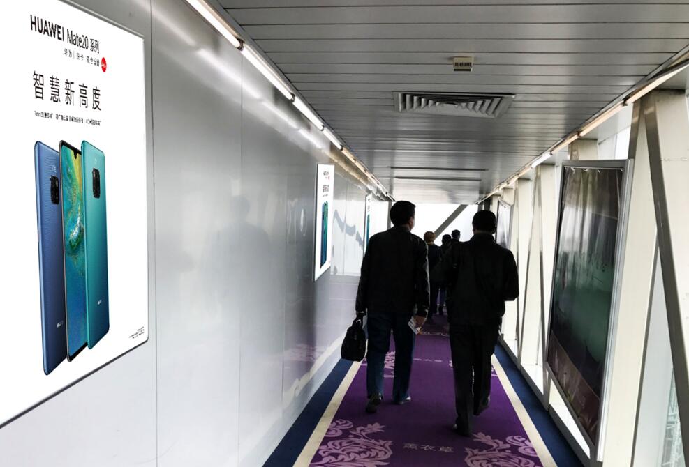 廊橋封閉的空間,受眾必經之地,聯排投放、矩陣式傳播,到達高頻曝光、高到達率的傳播效果。