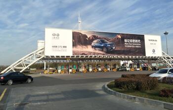 廣告位置:機場停車場收費站出入口 正迎面 廣告編號:SY-LM03 廣告規(guī)格:10m×60m×2面=1200m2 數(shù)量:1 廣告形式:收費站龍門 媒體價格:1360萬元/年/座 |