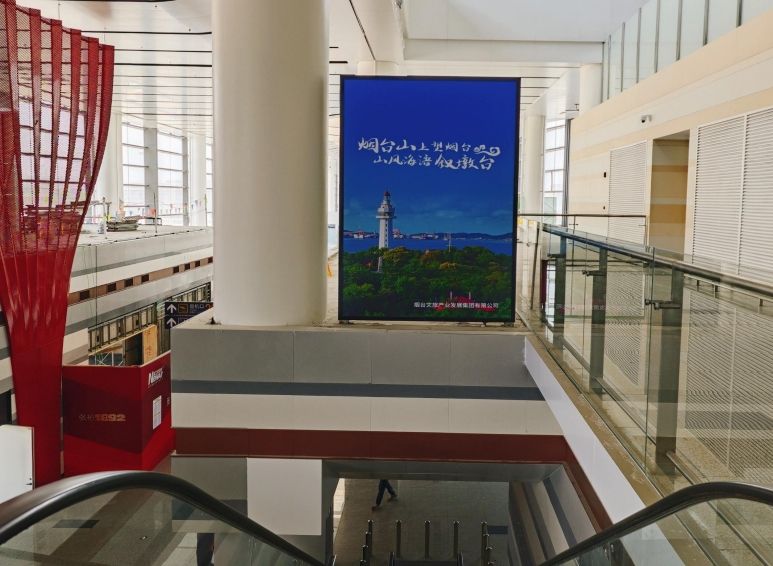 煙臺機場廣告-國內到達行李提取大廳下電梯正迎面led廣告