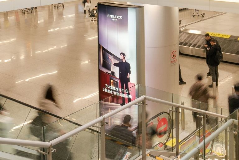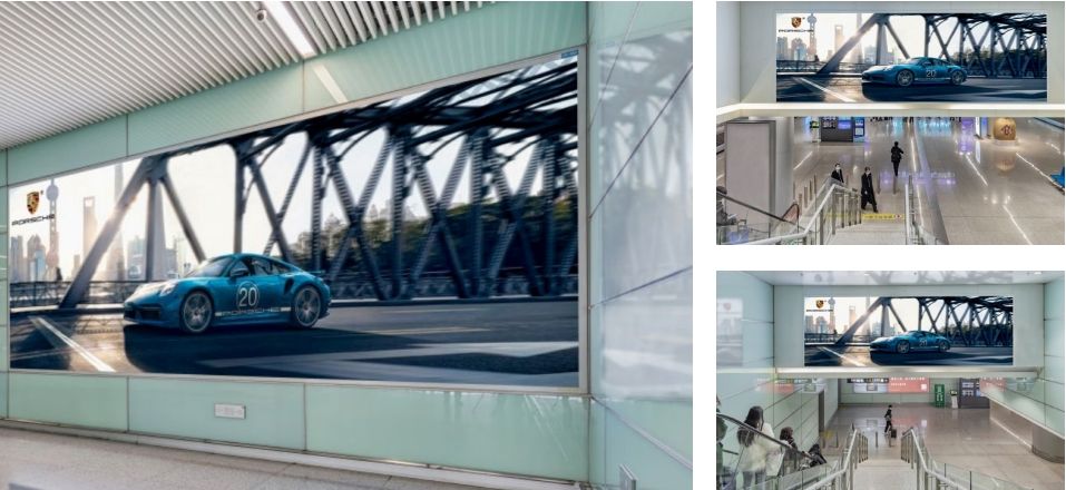 媒體面對磁浮地鐵通道出口處,全方位覆蓋磁浮到達(dá)及離開機(jī)場旅客。 不遠(yuǎn)處為旅客休息區(qū),具有受眾距離近,具有醒目、全面、沖擊力強(qiáng)的展示特點(diǎn), 受眾人群廣,宣傳效果佳。
