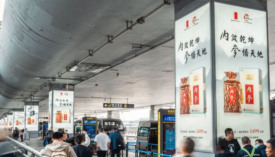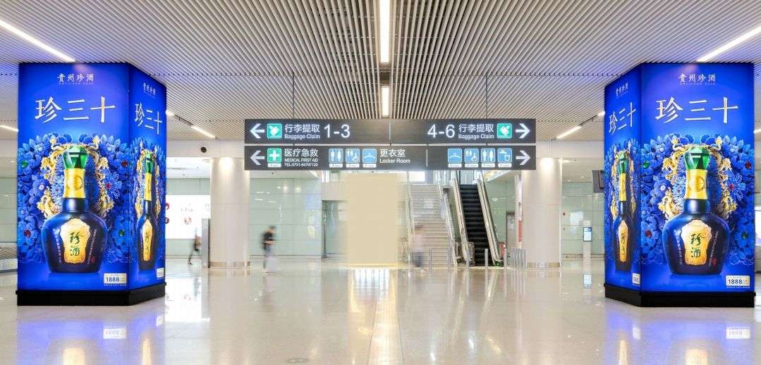 長沙黃花機(jī)場廣告 –??T2 到達(dá)廳外候車區(qū)包柱燈箱廣告