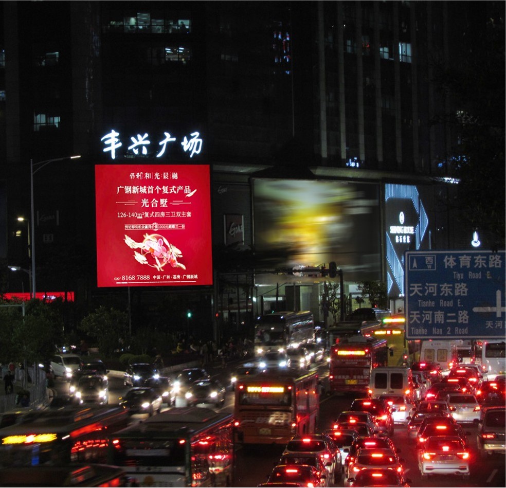 媒體位置:廣州天河路與天河東路交匯處豐興廣場東北角LED屏
