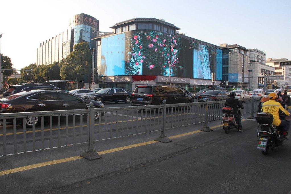 該屏位于蘇南第一商圈——蘇州觀前街核心位置,處蘇州黃金主干道南北向人民路、東西向干將路交匯,輕軌黃金干線一號線與四號線交匯,緊鄰的景德路是串聯觀前商圈與石路商圈的最便捷通道,人車流量巨大,是蘇州的網紅地標屏。