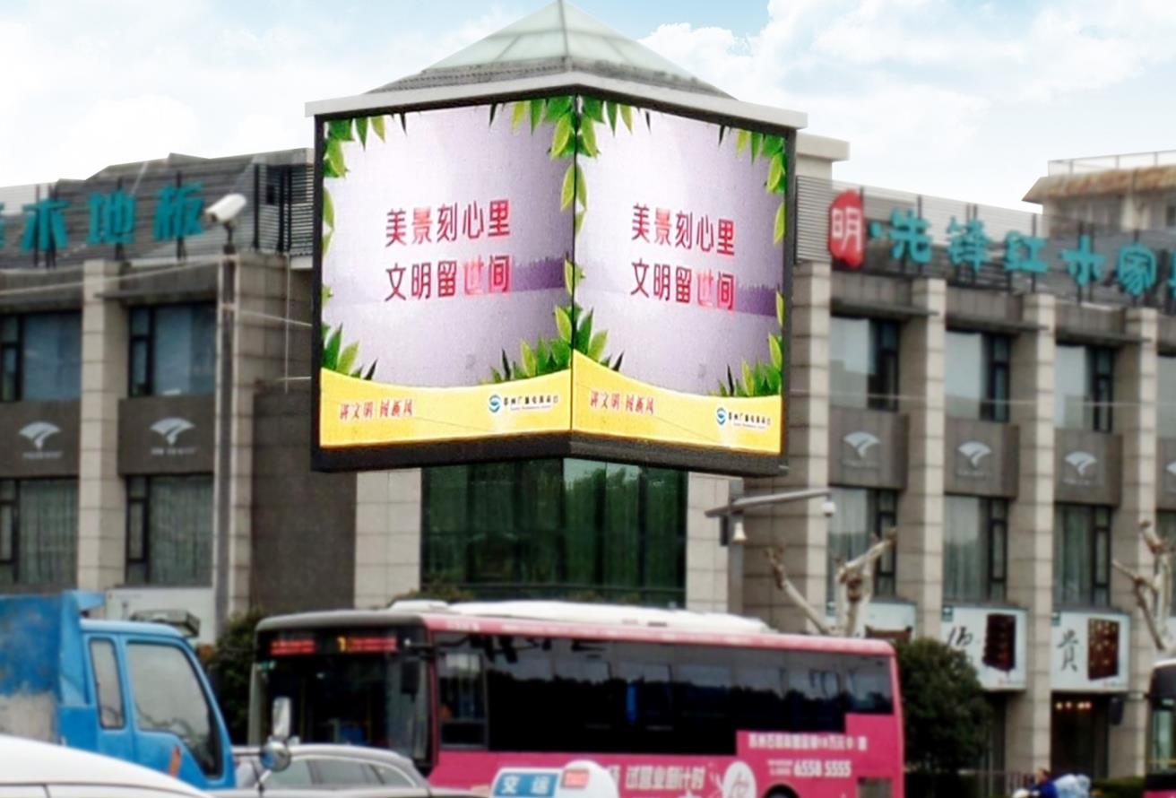 該媒體位于蘇州新市橋與盤胥路交匯處,采用雙顯示屏模式。