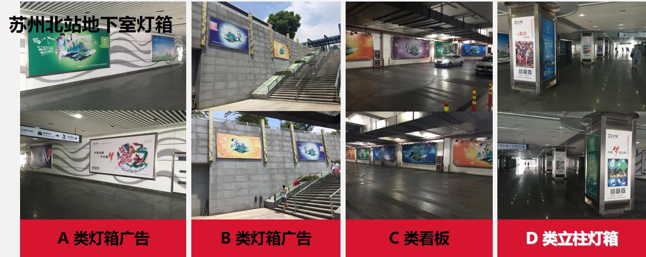 該燈箱廣告位于高鐵蘇州北站南廣場地下廣場,是蘇州高鐵北站接送客車輛與行人的必經之處。