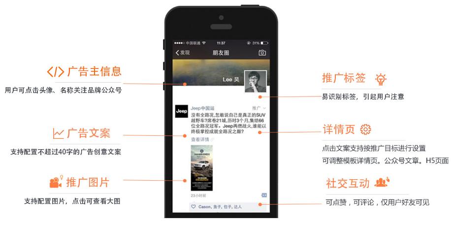 微信朋友圈廣告,可以把廣告強(qiáng)制植入非好友客戶朋友圈。