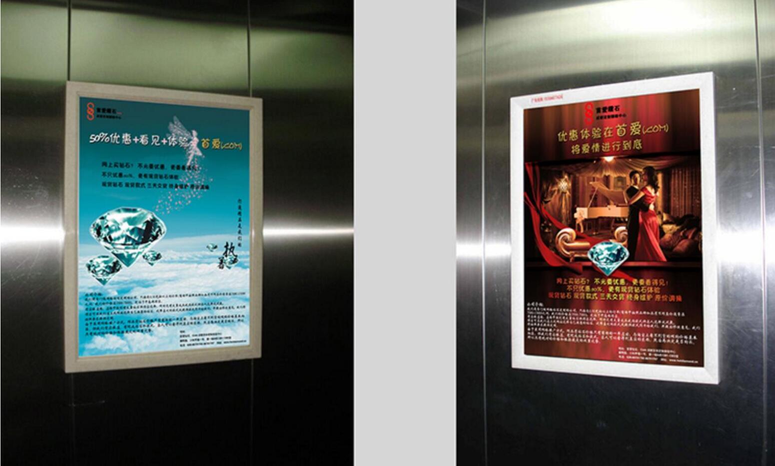 電梯平面媒體是設(shè)置于電梯轎廂、候梯間內(nèi)的平面鏡框,她具有零干擾、可平視、親和力強(qiáng)的特點(diǎn),充分利用受眾乘(候)梯的“途中時(shí)間”,填補(bǔ)電視、報(bào)刊等傳統(tǒng)媒體的空白,因有效閱讀而保證極高的廣告到達(dá)率。