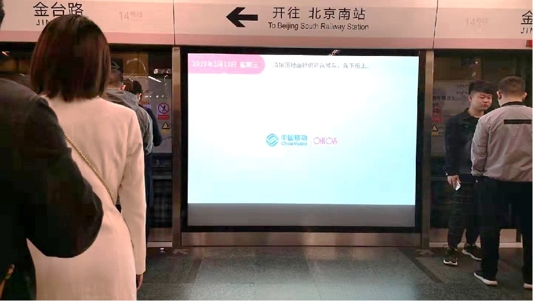 14號線媒體點位:望京、大望路、金臺路、九龍山(4個站點,每站4塊,16塊屏蔽門投影)