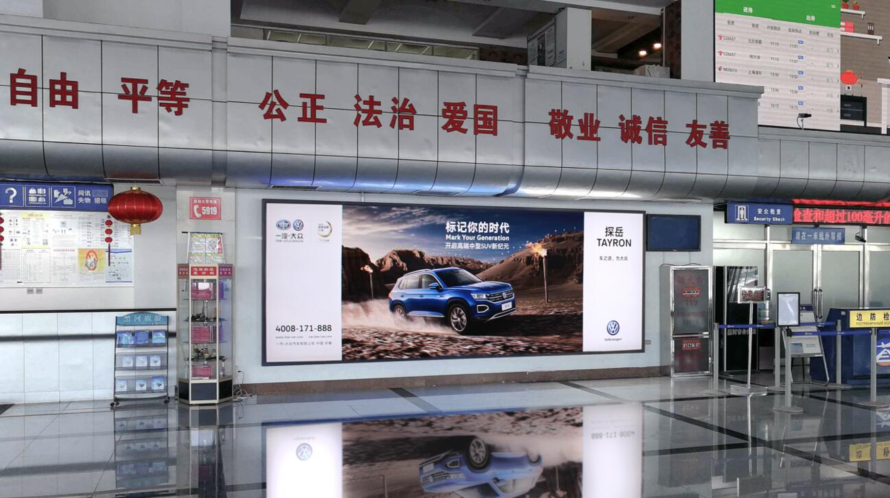 黑河璦琿機場廣告,黑河飛機廣告,投放飛機廣告,站樓墻面燈箱廣告,萬事成傳媒