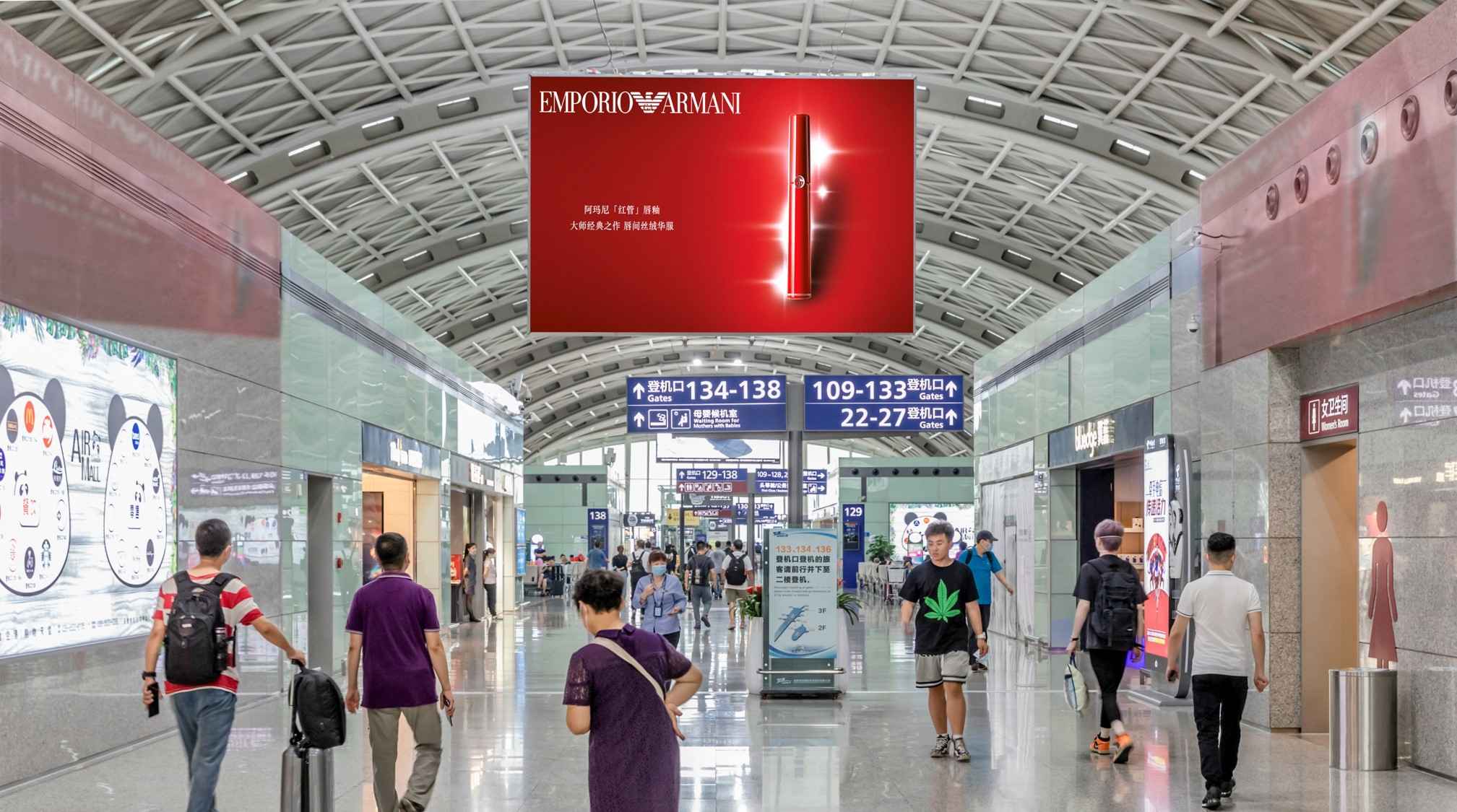廣告位置:T2航站樓二層出發(fā)區(qū)域 (旅客行走方向正迎面)