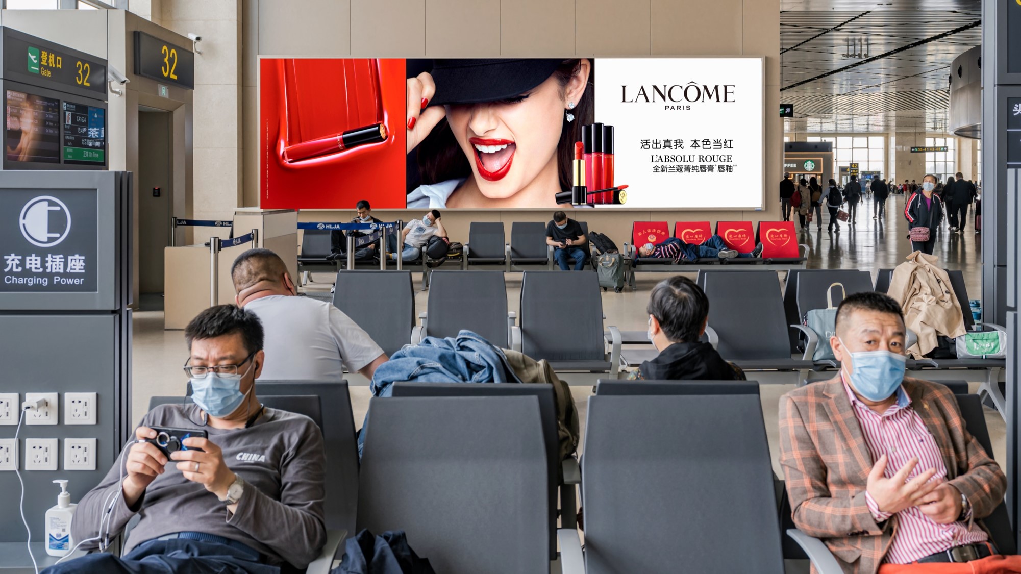 廣告位置:T2航站樓出發通廊,過安檢正迎面