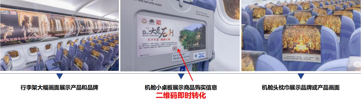 通過全方位的畫面包裹,全方位塑造品牌形象在飛行途中強化旅客對產品和品牌的印象。