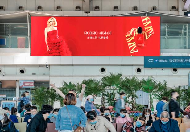 大連周水子機場國內航站樓出發大廳led大屏廣告,萬事成傳媒