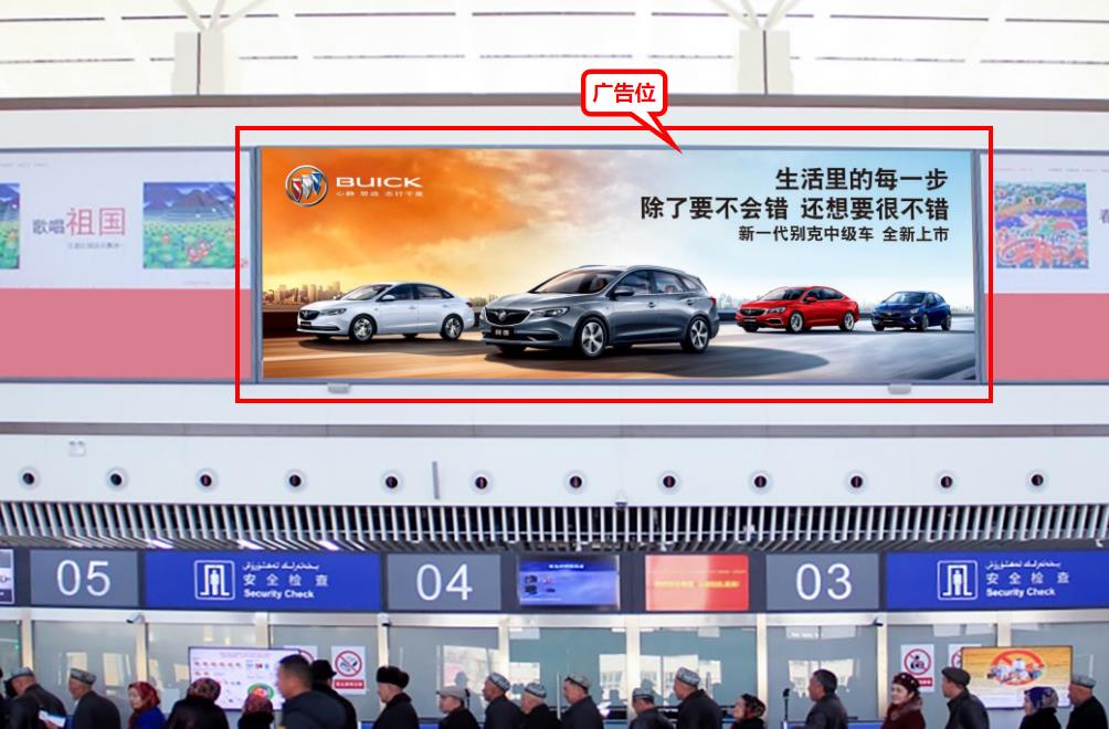 和田機場國內出發安檢正上方led大屏廣告,萬事成傳媒