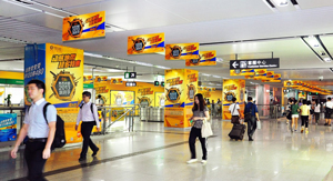 品牌通道,1號線大劇院通道C3-2,發布費(元/4周):830,000,上下畫服務費(元/次):55,000,說明:13個4封燈箱+墻貼
