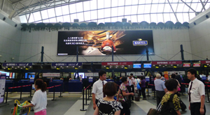 廣告位置:T2航站樓國內(nèi)、國際到達出口上方 廣告編號:BJ-LED-1、BJ-LED-2
