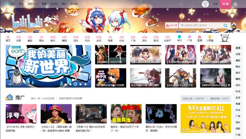 bilibili目前擁有動畫、番劇、國創、音樂、舞蹈、游戲、知識、生活、娛樂、鬼畜、時尚、放映廳等 15 個內容分區,生活、娛樂、游戲、動漫、科技是B站主要的內容品類并開設直播、游戲中心、周邊等業務板塊。?