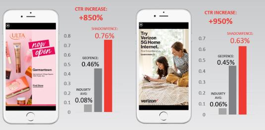 根據(jù)官方給出的數(shù)據(jù),使用Shadowfence的廣告點擊率是行業(yè)平均值的10倍左右,比利用Geofence(地理圍欄)的廣告效果也高出20%-30%。