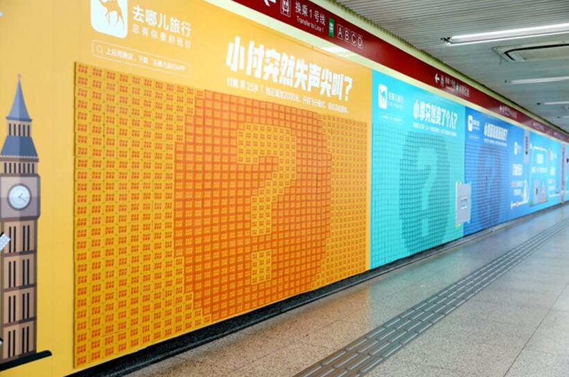7月1日,去哪兒網(wǎng)投放北京東單地鐵墻體廣告,換上了長達百米的“尋人啟事”海報,吸引了大批行人駐足觀看、互動。