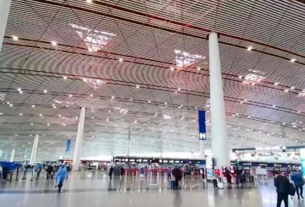 北京大興國際機場,位于中國北京市大興區榆垡鎮、禮賢鎮和河北省廊坊市廣陽區之間,北距天安門46千米、北距北京首都國際機場67千米、南距雄安新區55千米、西距北京南郊機場約640米(圍場距離),為4F級國際機場、世界級航空樞紐、國家發展新動力源 。