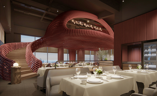 本餐廳設計是由全國知名設計師吳為先生用時兩年傾力打造,空間與環境的超前設計靈感,將用餐變幻為一場美食心靈的對話,素雅的原木與溫馨的燈光,勾勒出餐廳主題「烤」的簡約線條,塑造出不拘一格的時尚用餐氛圍,通過空間布局解構展現炭火的魅力。
